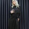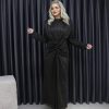 6038 – Pileli Kalem Abiye Elbise Simli Siyah