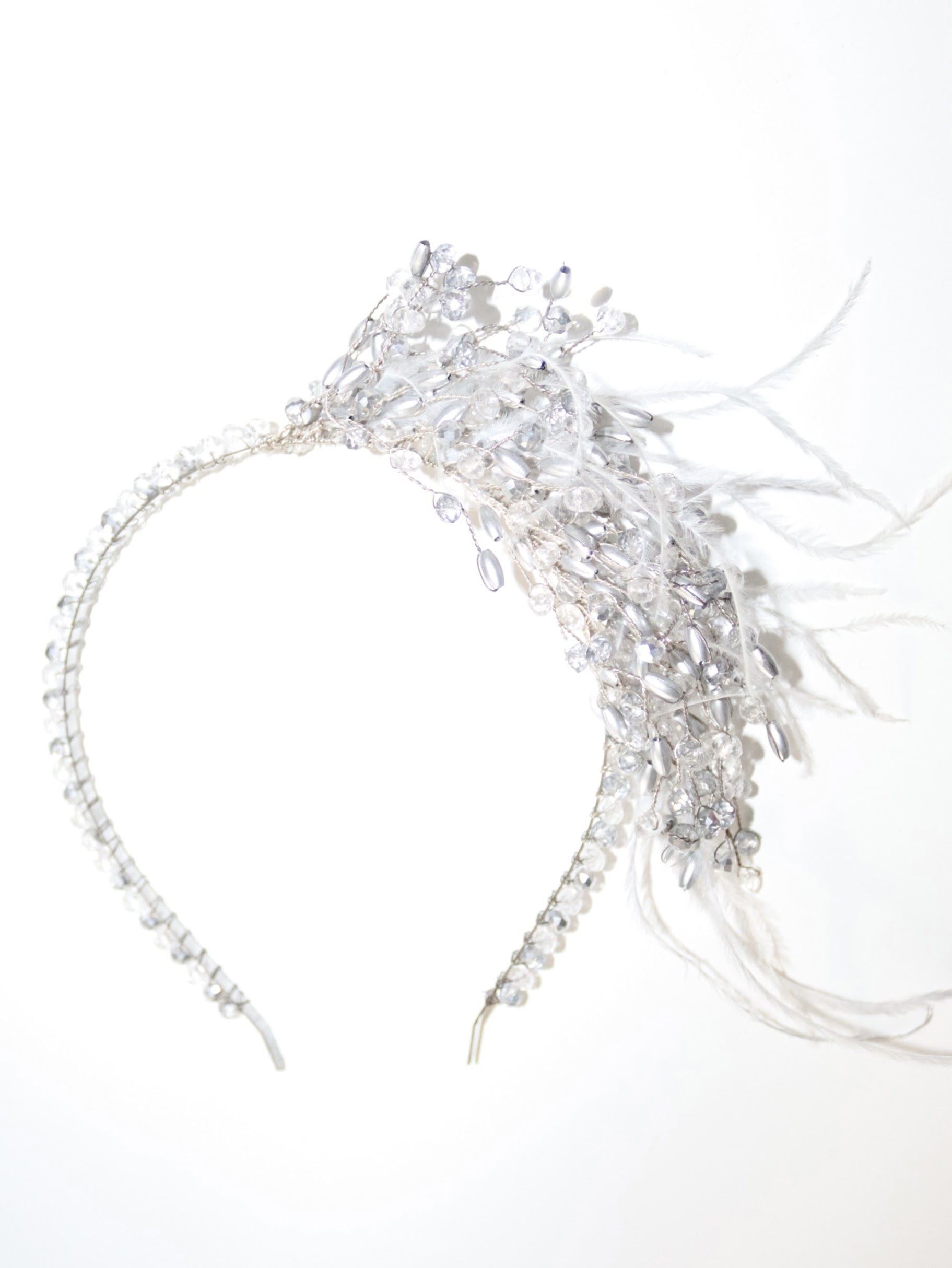 6112 – Taşlı ve Tüylü Gümüş Metal Taç
