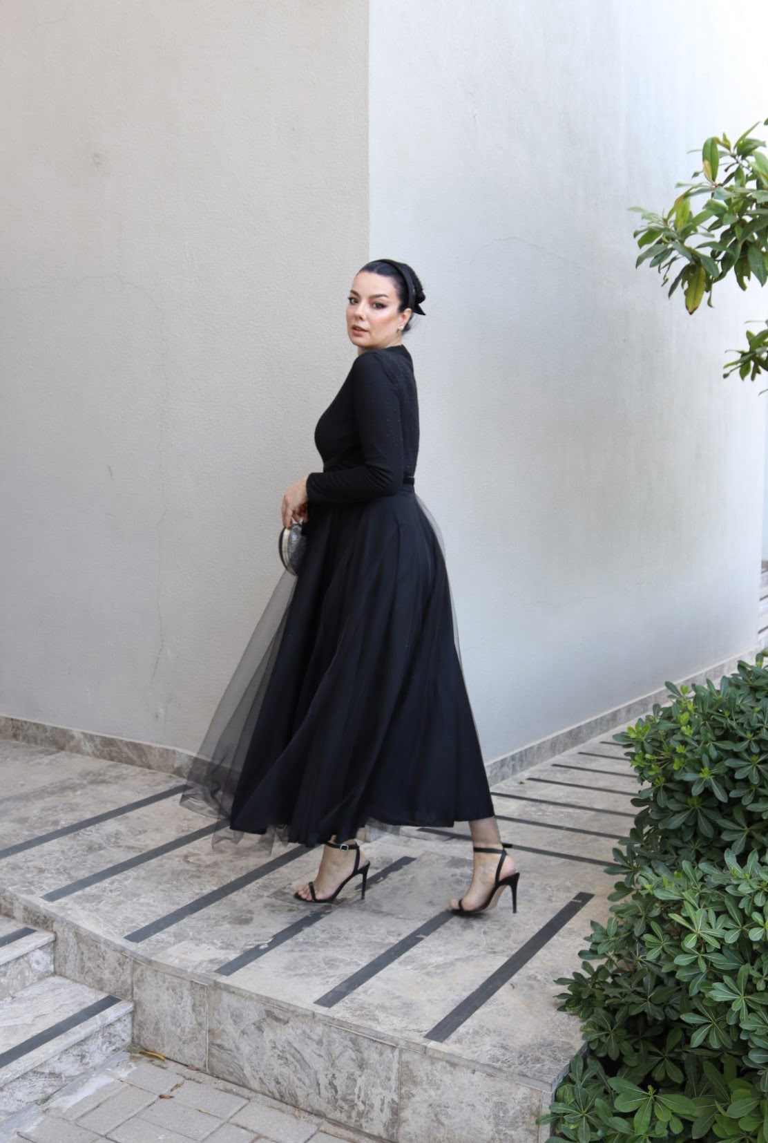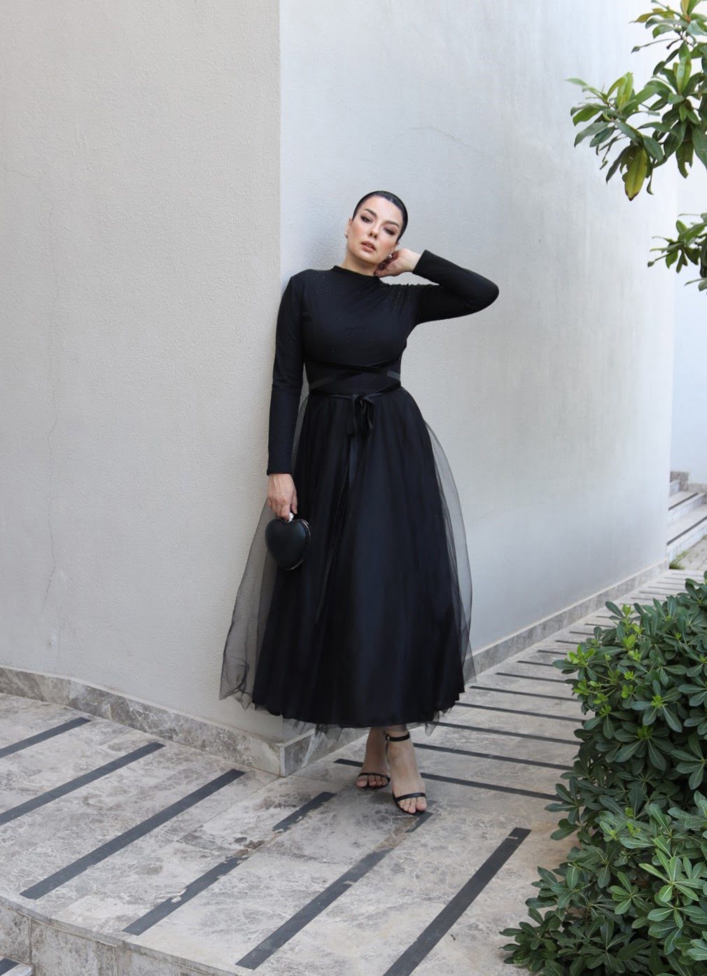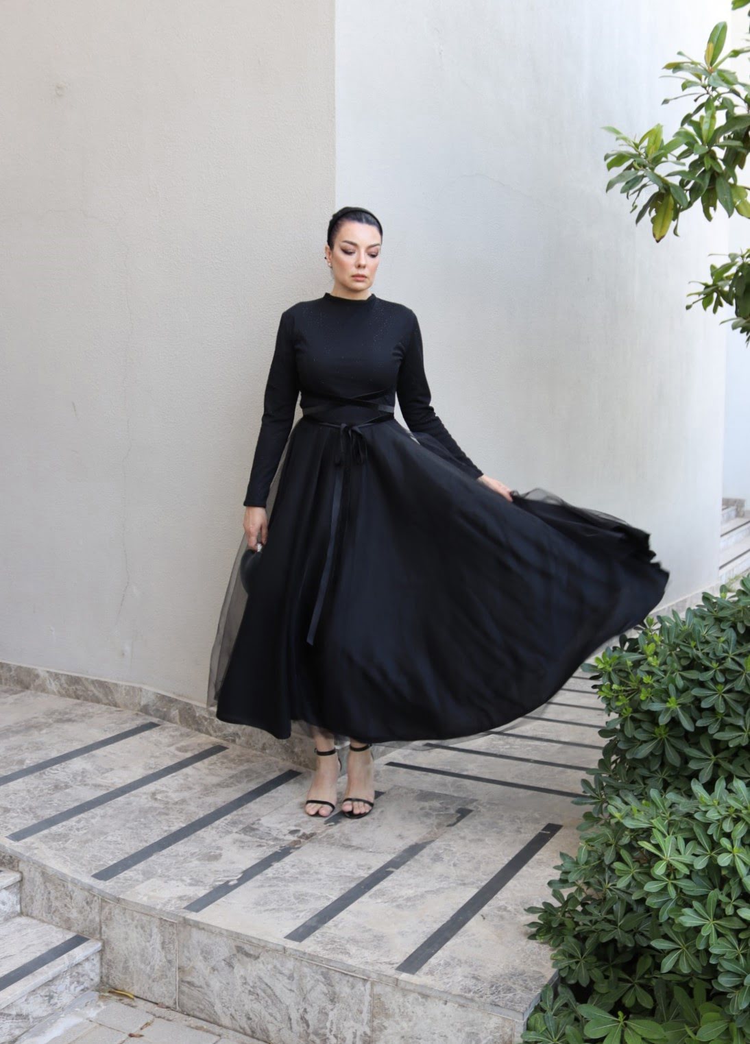 6125 – Taşlı Kloş Tül Abiye Siyah