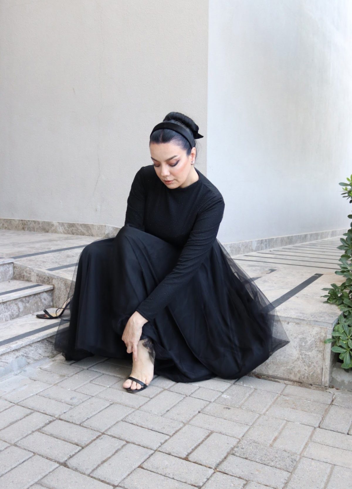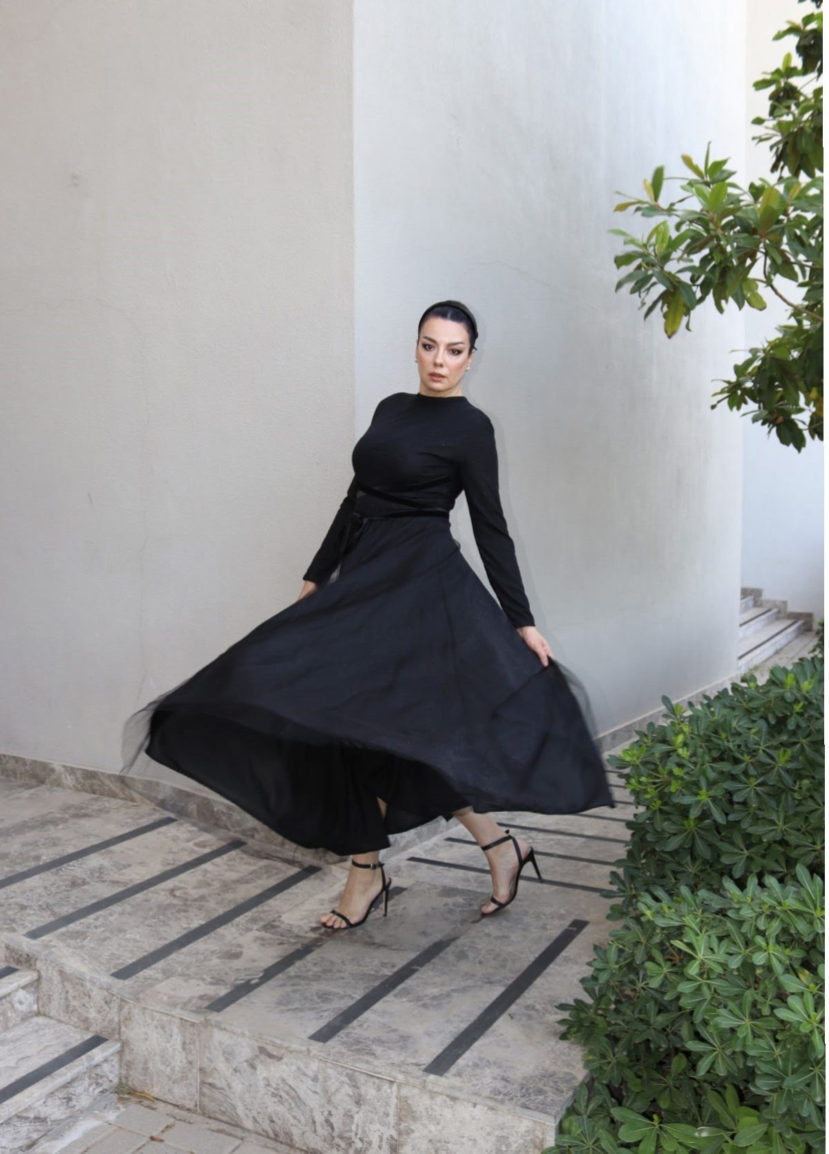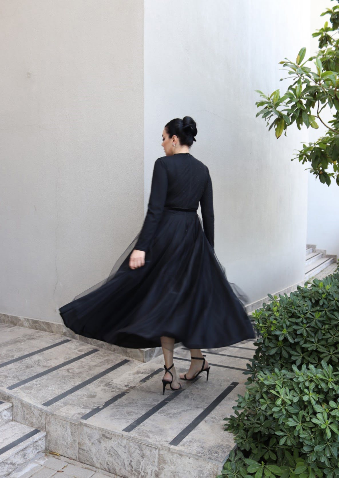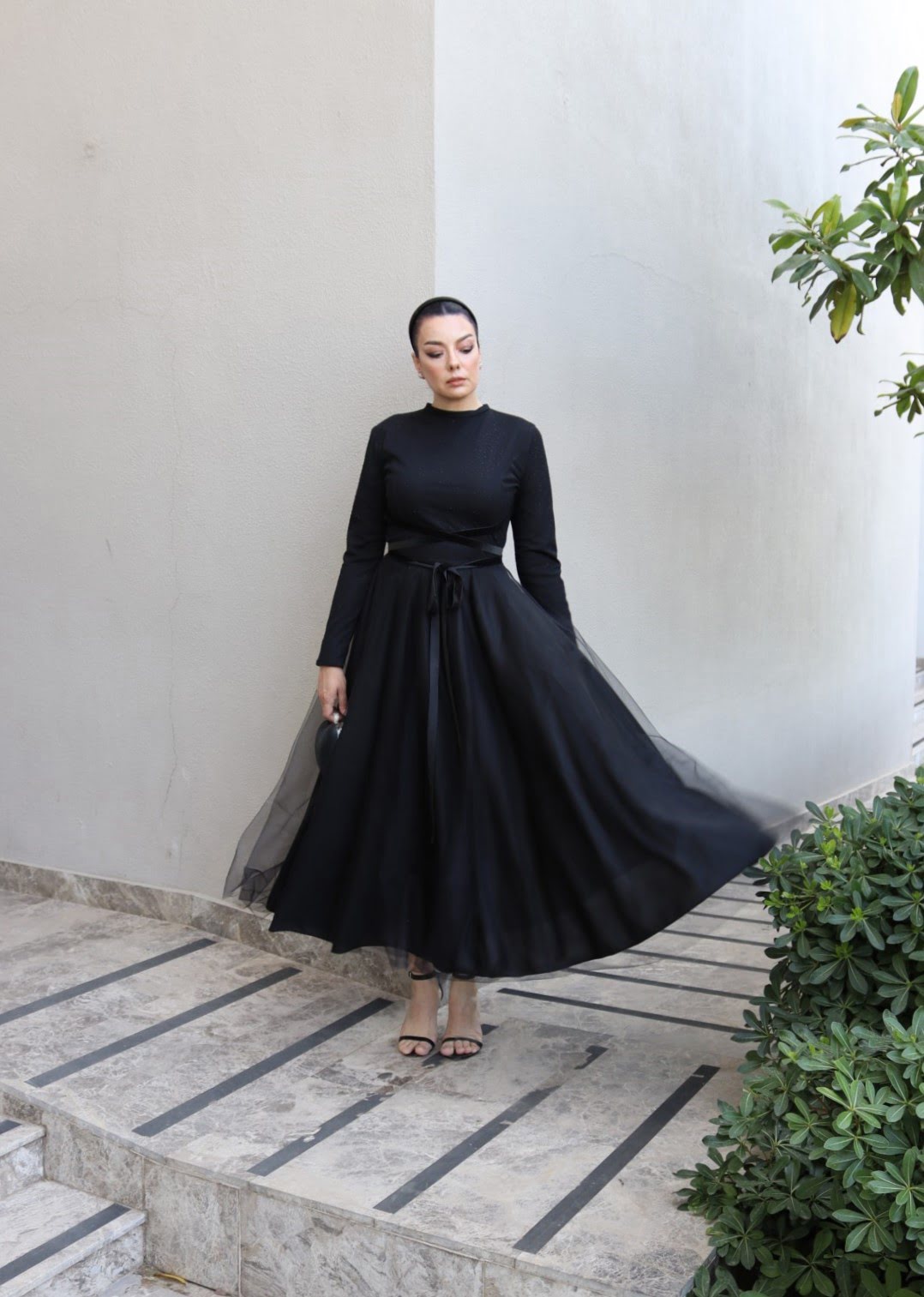 6125 – Taşlı Kloş Tül Abiye Siyah
