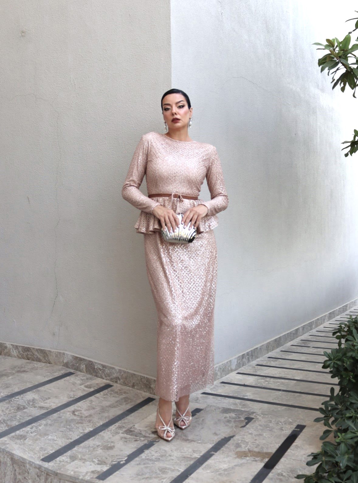 KUMAŞ: Glitter Simli Kumaş ve İnterlog Astar .