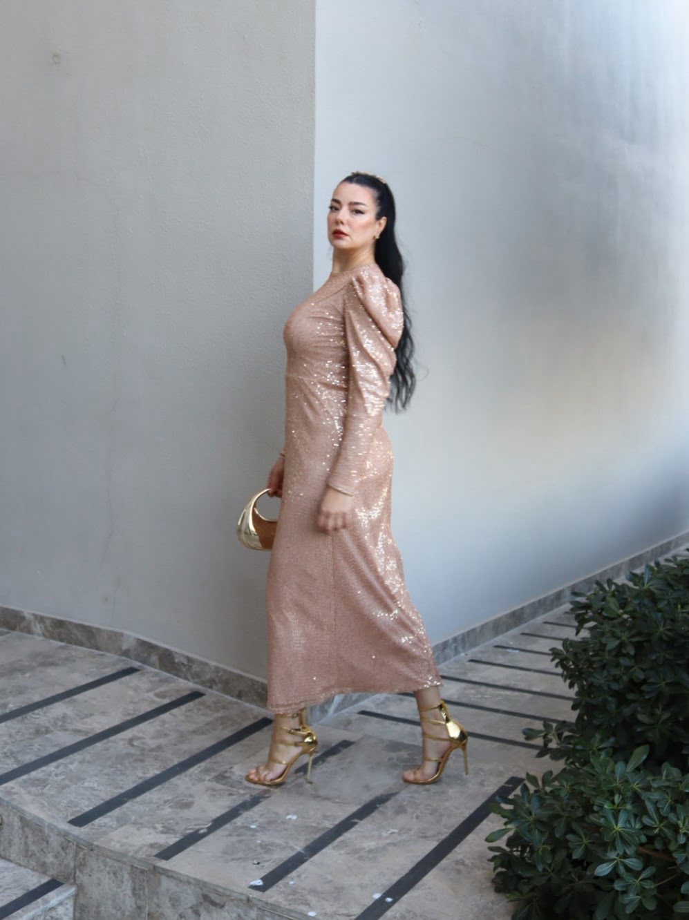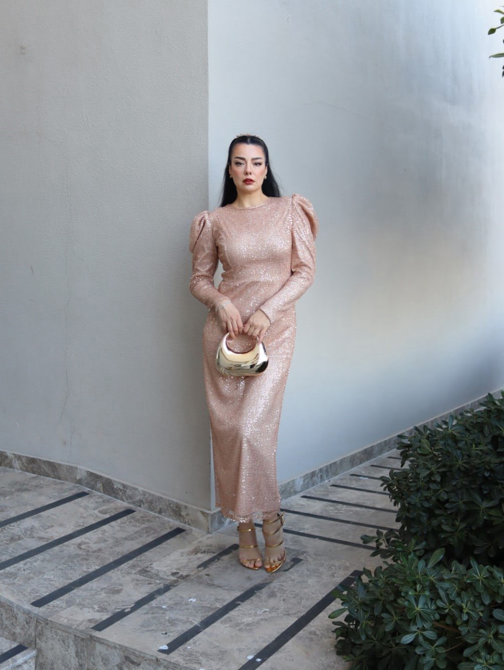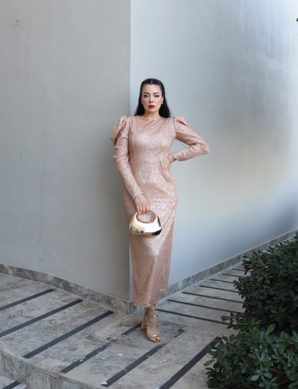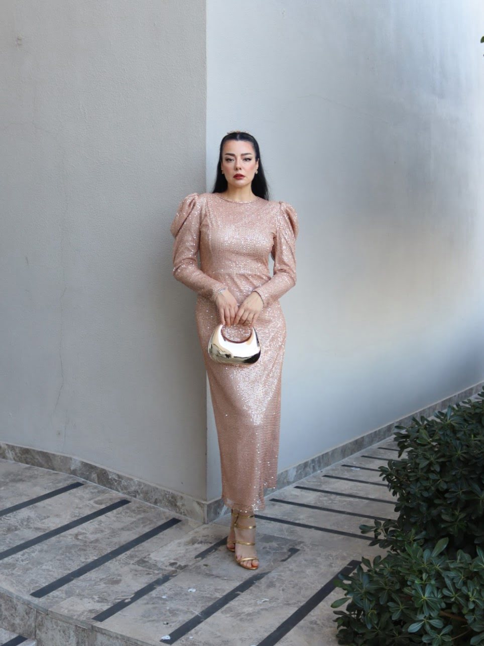 KUMAŞ: Likralı File Payet. Ürün Astarlıdır.